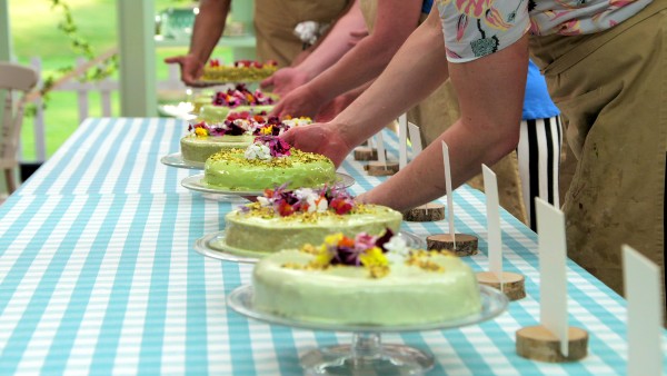 Voice-overs from the hosts and chatter from the contestants share a variety of baking tidbits, such as why we knead bread (to form gluten), and whether to grease the pan for an angel food cake (don’t).