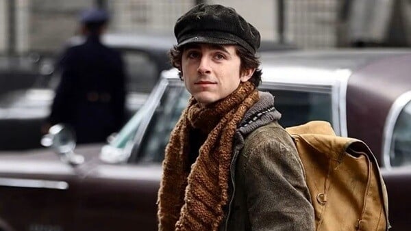Image: Timothée Chalamet in A COMPLETE UNKNOWN. Courtesy of Searchlight Pictures. © 2024 Searchlight Pictures All Rights Reserved.