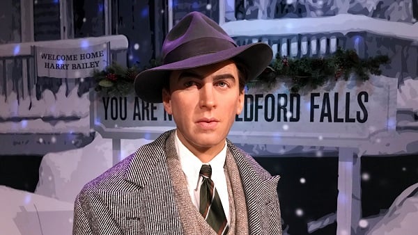 Image: Hollywood, California/USA. August 3rd, 2019. Jimmy Stewart figure as George Bailey in It’s a Wonderful Life at Madame Tussaud’s in Hollywood/Shutterstock