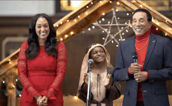 Tia Mowry stars as a woman who inadvertently promises to deliver singing legend Smokey Robinson for her church's annual Christmas pageant. From the image provided (see above), it looks like there's a stable and a Christmas star involved!