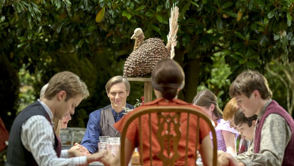 Image: “A Waltons Thanksgiving” Pictured (L - R): Logan Shroyer as John Boy Walton, Teddy Sears as John Walton, and Bellamy Young as Olivia Walton -- Photo: Tom Griscom / The CW -- © 2022 The CW Network, LLC. All Rights Reserved.