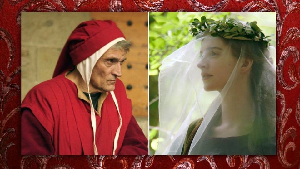 Image: (L-R) Antonio Fazzini as Dante Alighieri (PHOTO: Steeplechase Films, Tim Cragg), and Fattori May appears as Beatrice Portinari, in 'Dante: Inferno to Paradise' (PHOTO: Steeplechase Films, Luca Ciuti)/PBS