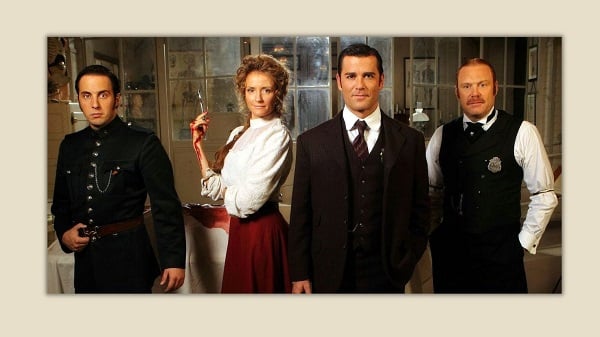 And other historical figures also make cameos in the shows. They include Arthur Conan Doyle, Andrew Carnegie, Charlie Chaplin, Winston Churchill, Charles Darwin, Albert Einstein, W.C. Fields, Henry Ford, Sigmund Freud, Florence Nightingale, Al Jolson, Jack London, Bat Masterson, President William McKinley, Annie Oakley, Mary Pickford, Theodore Roosevelt, Mark Twain, H.G. Wells, Oscar Wilde, and Frank Lloyd Wright, who designed the Murdoch house.