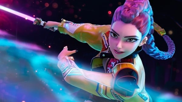 The film focuses on Korean pop music (K-pop, for short) girl group Huntrix, stylized as HUNTR/X, led by Rumi, whose powerful voice and elaborate costumes hide a secret.