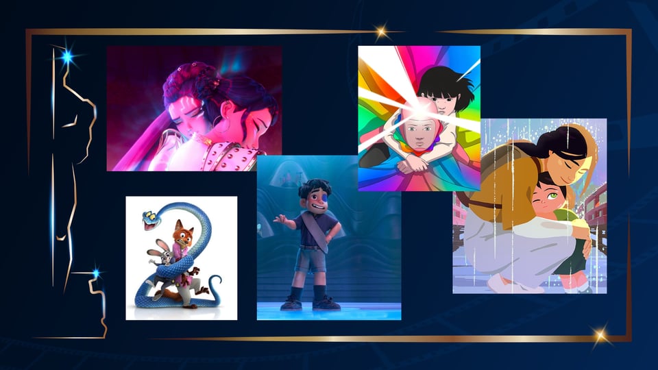Image: Background: Adobe Stock. Inserts: (L-R, top row); KPop Demon Hunters (© Netflix); Arco (© Neon); (L-R, bottom row): Zootopia 2 (© Walt Disney Pictures), Elio (© Pixar), Little Amélie or the Character of Rain (© GKIDS)