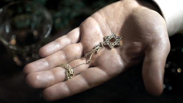 Image: The butterfly necklace that was given to Miep folds into a Star of David, as seen in A SMALL LIGHT. (Credit: National Geographic for Disney/Dusan Martincek)